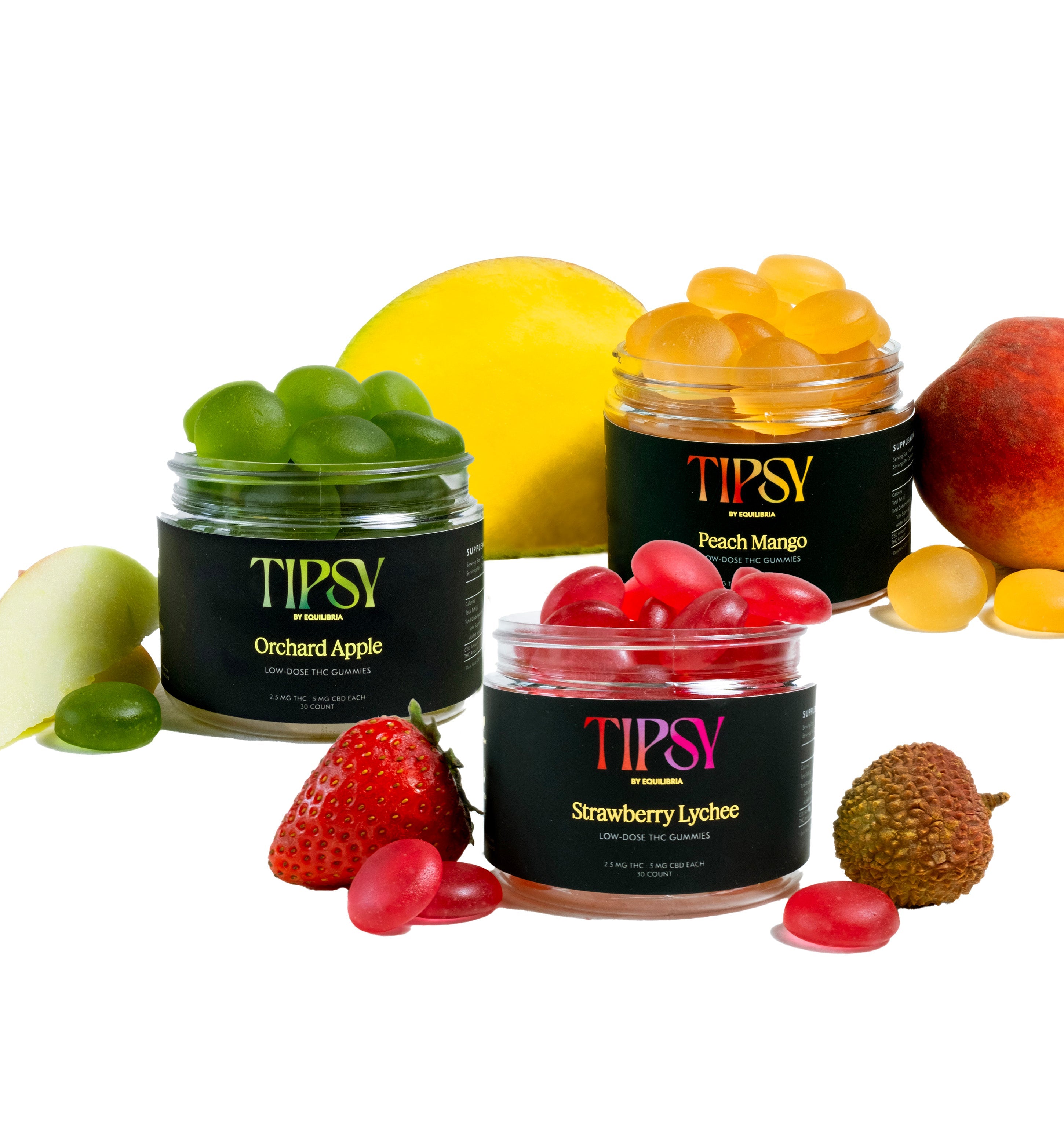 Enjoy a better way to unwind with Tipsy Low-Dose THC Gummies — and save 15% for bundling all 3 flavors!