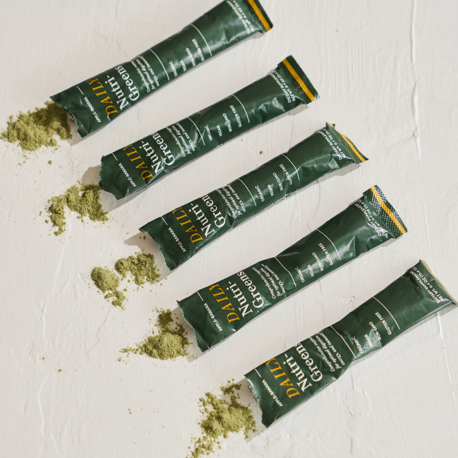 Our Daily Nutri-Greens combines different greens, grass, and fruits that provide essential vitamins and minerals into a delicious powder to help promote overall wellness. By supporting various bodily functions and filling in the gaps in your daily nutrition, you can set yourself up with better mood, increased energy levels, and improved overall health.*