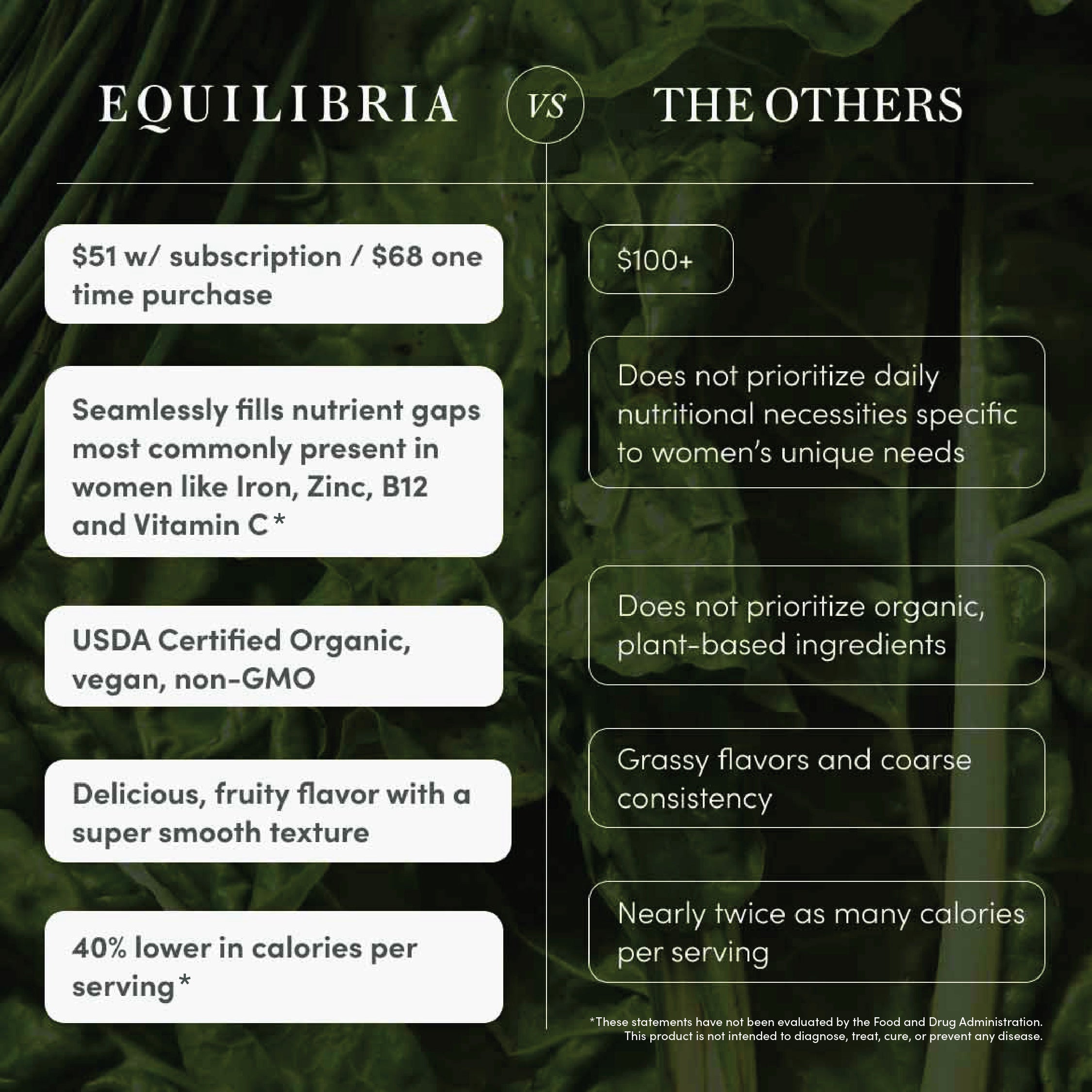 Provides a powerful blend of organic greens, grasses, and fruits, to boost overall health and nutrition. Contains B-vitamins, Iron, Zinc, and other key nutrients for women’s health.*