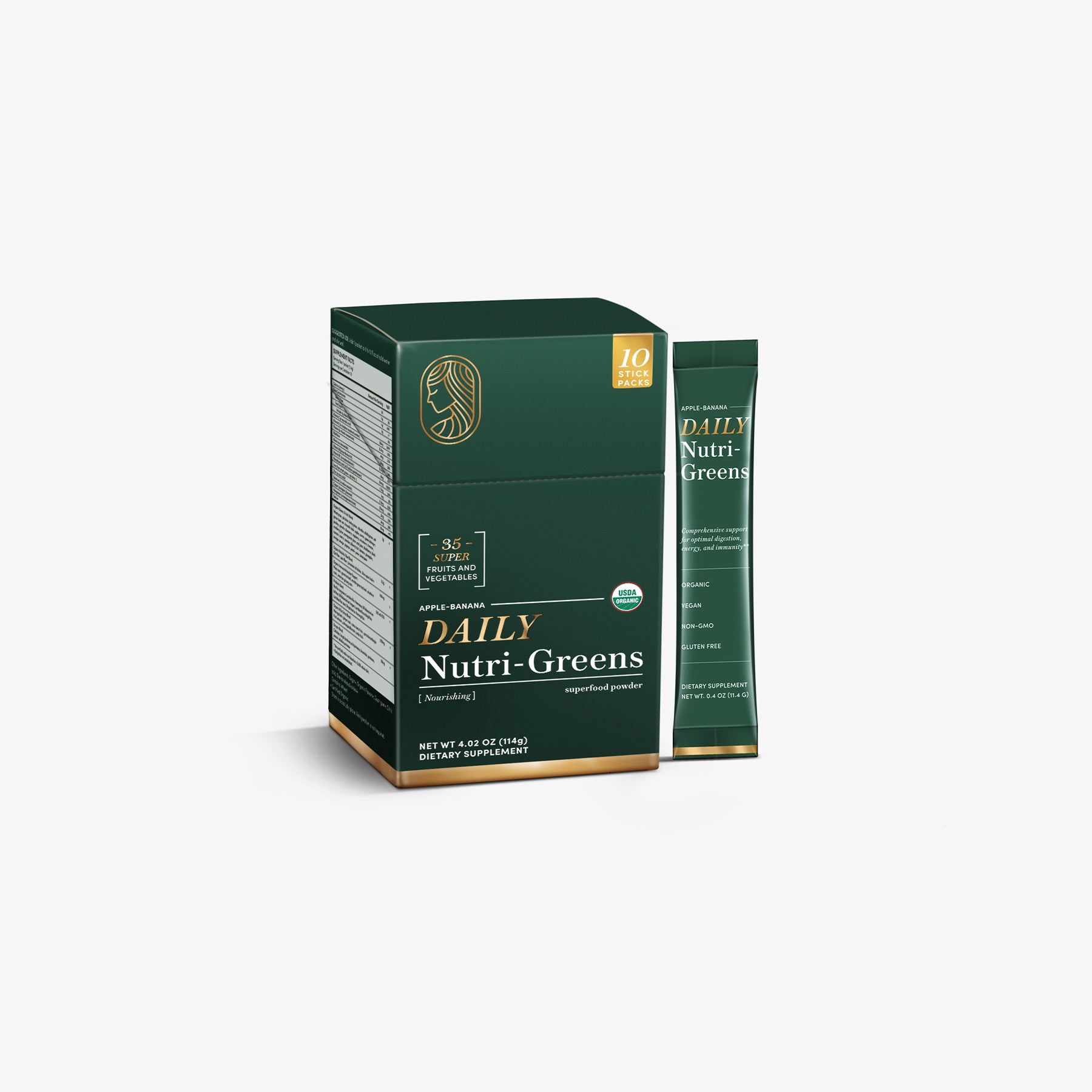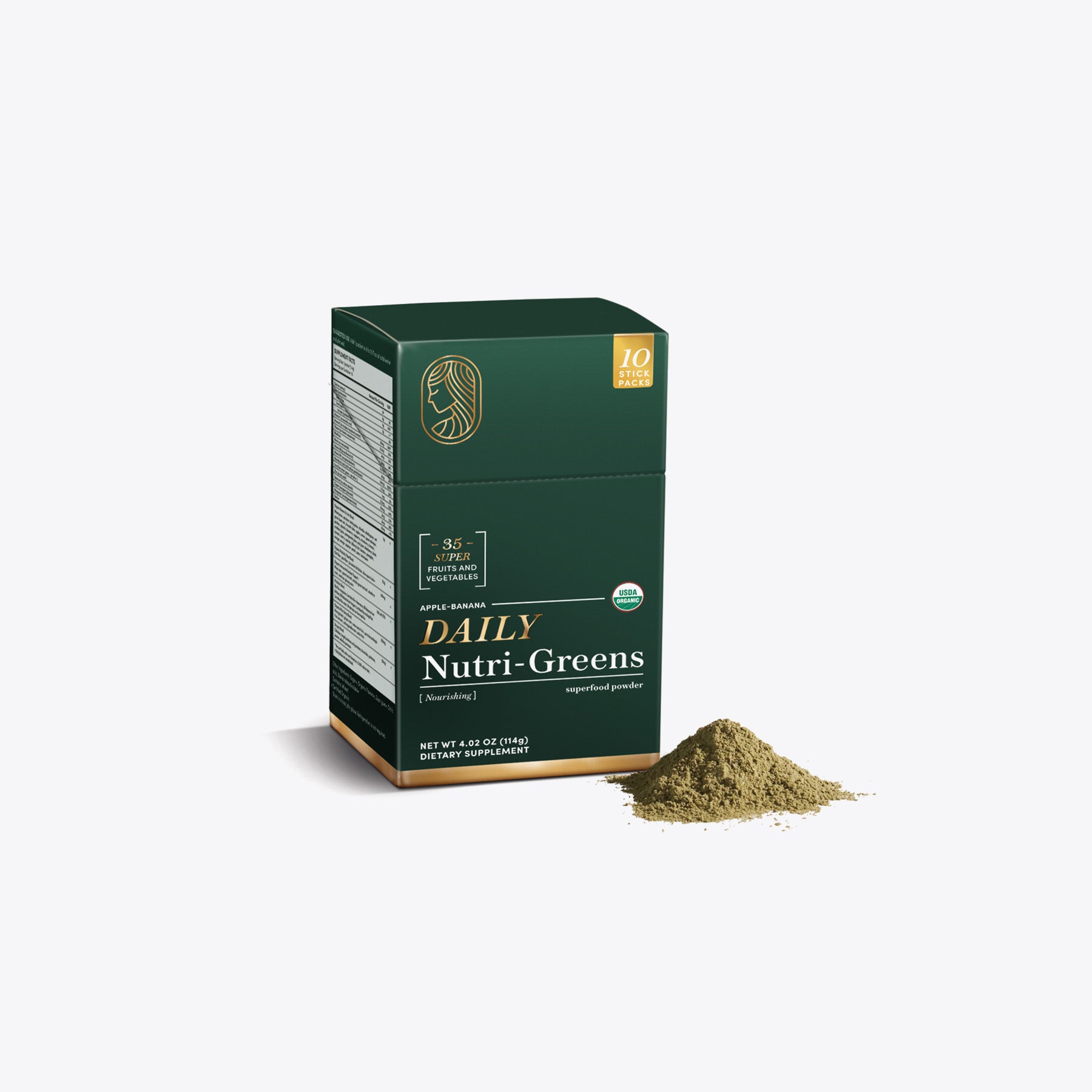Our Daily Nutri-Greens combines different greens, grass, and fruits that provide essential vitamins and minerals into a delicious powder to help promote overall wellness. By supporting various bodily functions and filling in the gaps in your daily nutrition, you can set yourself up with better mood, increased energy levels, and improved overall health.*