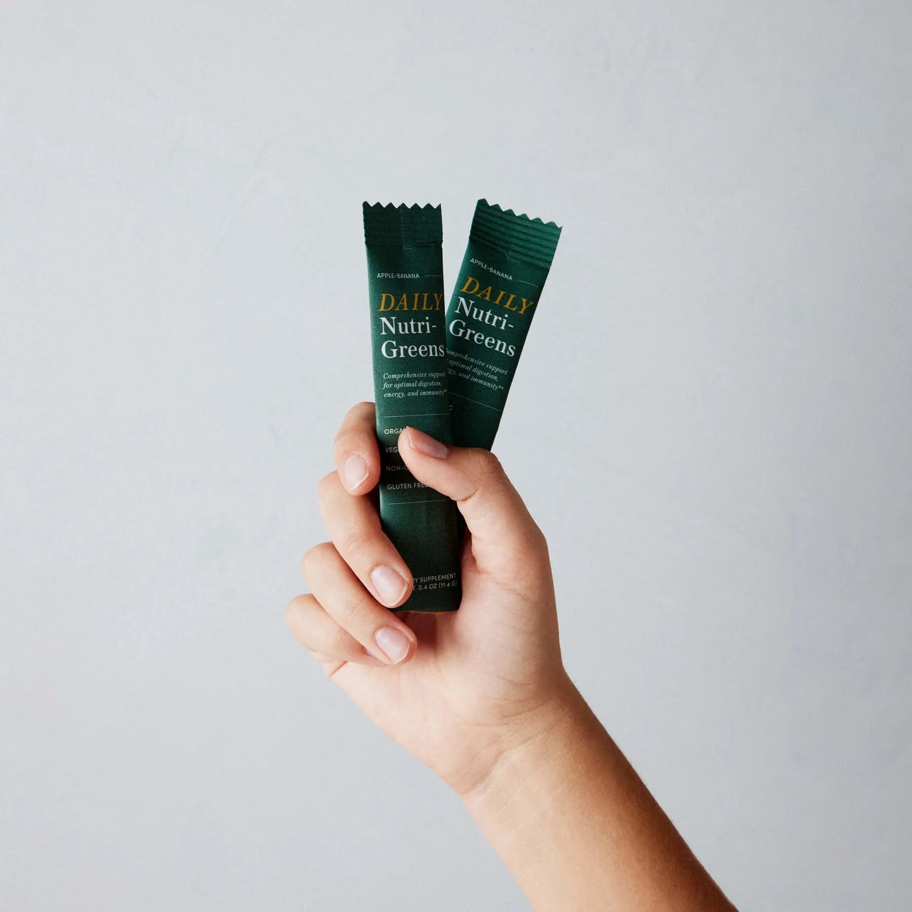 The Daily Nutri-Greens travel packets include a versatile blend of greens, fruits, prebiotic fibers, probiotics, antioxidants, detoxifiers, and enzymes. The combination of all these ingredients helps to promote overall wellness by supporting various bodily functions and filling in the gaps in your daily nutrition. This can lead to better mood, increased energy levels, and improved overall health.* Use these if you are looking to: